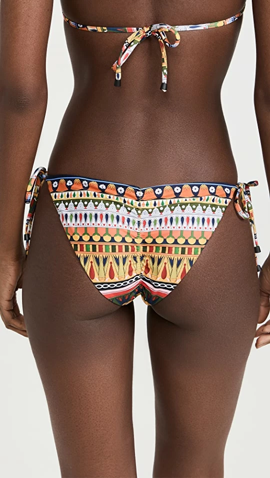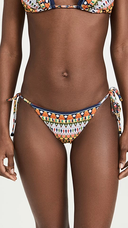 A beach-day staple with a fresh look, these Agua Bendita bikini bottoms update a classic string tie silhouette with one of the label’s signature eye-catching prints and embroidered detailing.