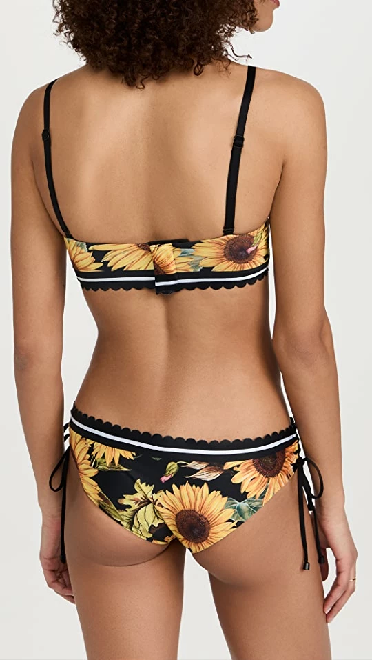 A unique and eclectic option for your next beach getaway, this Agua Bendita underwire bikini top juxtaposes a pretty sunflower print with two-tone scalloped trim at the hem.