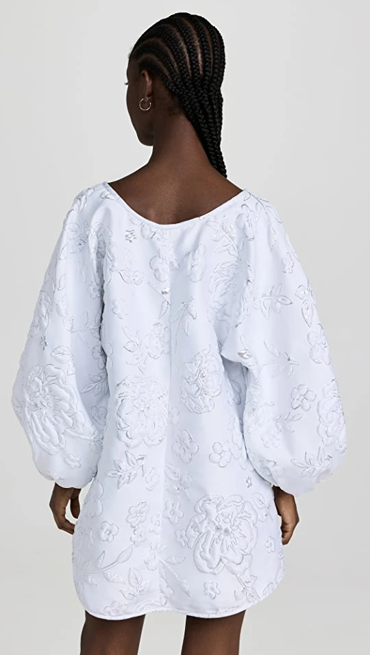 - Round neck and long puff sleeves