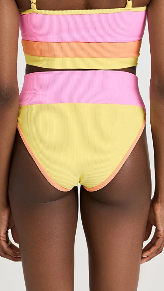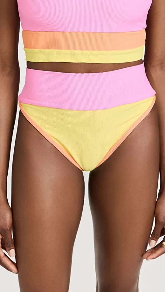 With cheerful colorblocking in a mix of 3 distinct shades, these high-rise Beach Riot bikini bottoms are sure to boost your mood.