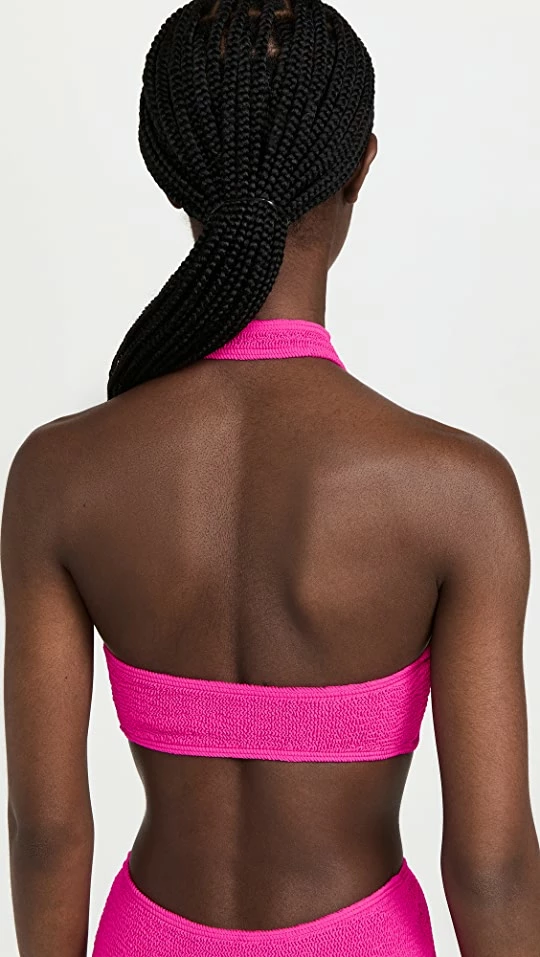 With texture-rich fabric, a vivid shade, and a unique halter neckline, this Bond-eye bikini top is a bold piece for poolside afternoons.