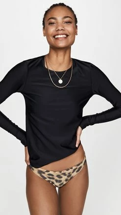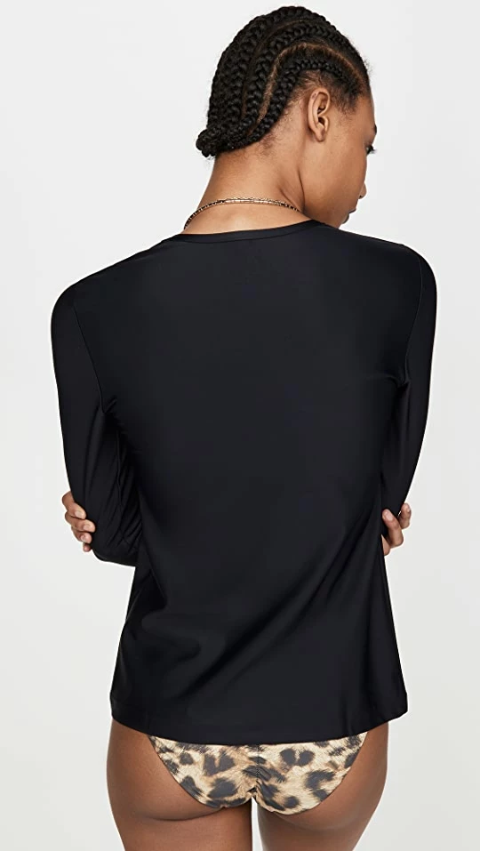 A Cover swim tee offers extra protection for the summer adventurer, pair this chic piece with gold-tone jewelry and a leopard print suit for a sleek and stylish look.