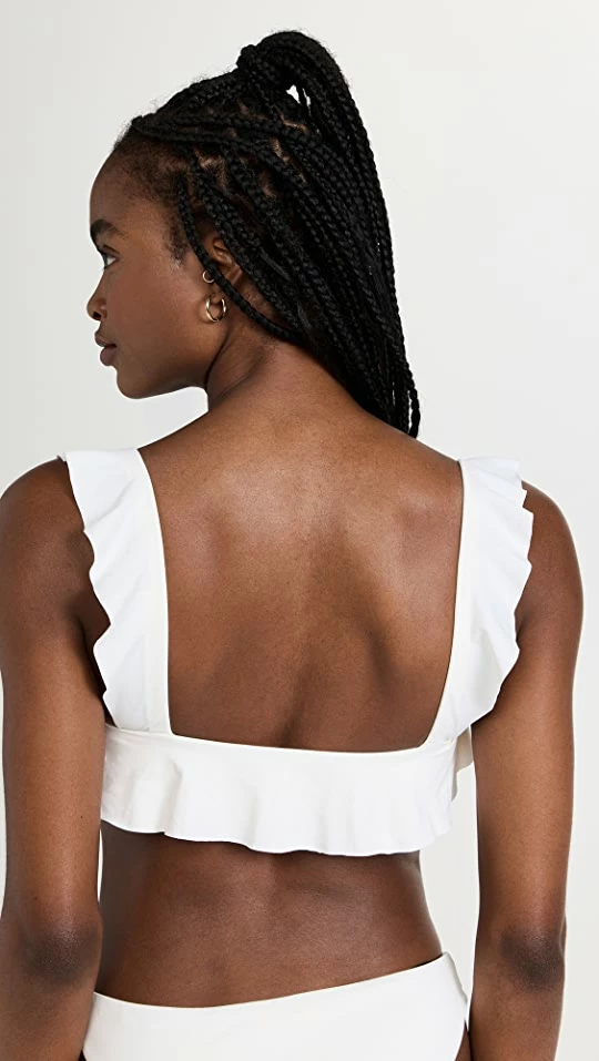 A simple yet romantic addition to any swim wardrobe. This signature Eberjey bikini top brings all the ruffles to a sporty silhouette for a fun piece to wear poolside.