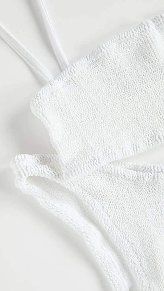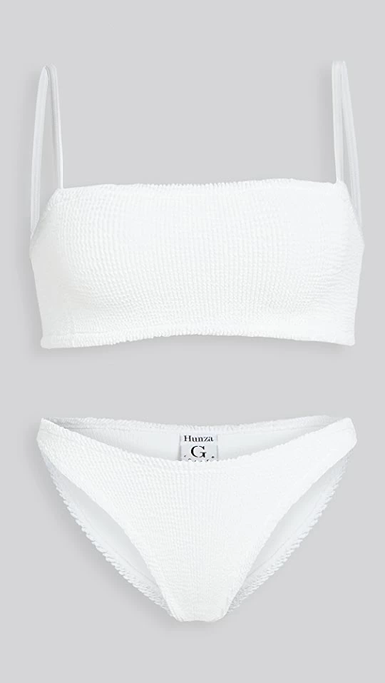 A cult-favorite for a reason. This Hunza G bikini set has a simple and sporty silhouette and comes crafted in the label’s signature crinkle fabric, which is specifically designed to support your every curve.
