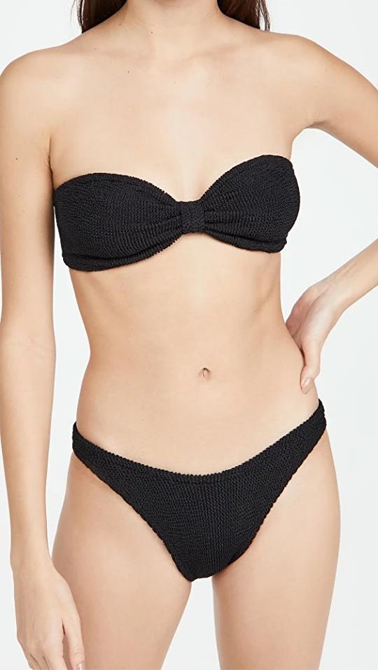 A pretty version of a simple bandeau bikini. This ruffle-trimmed Hunza G bikini set is crafted from the brand’s signature crinkle fabric, which is specifically designed to conform to your every curve.