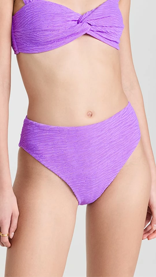 Top 10 🌟 Jonathan Simkhai Bardette Textured Swimwear High Leg Bottoms Sheer Lilac/Merlot 😍