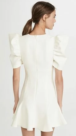 An elegant and alluring LIKELY mini dress with a spring-friendly feel, featuring a figure-skimming cut, an off-shoulder neckline, and a subtle notch at the hem.