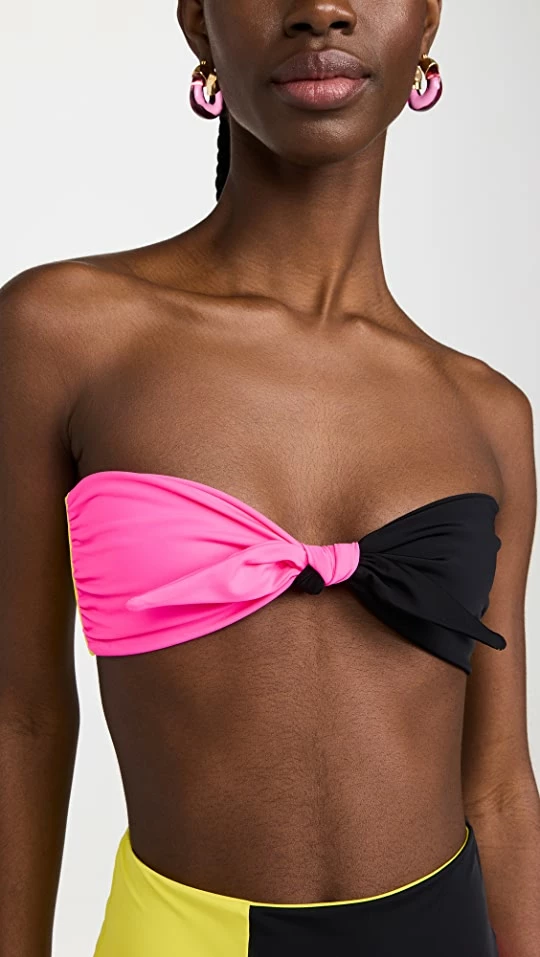 A bold take on classic bandeau style, this MARA HOFFMAN bikini top features a colorblock motif in a unique mix of shades, plus a pretty bow between the cups.