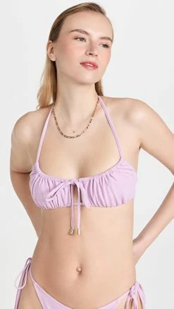 A touch of ruching adds a subtle bit of extra softness to this understated MINKPINK bikini top.