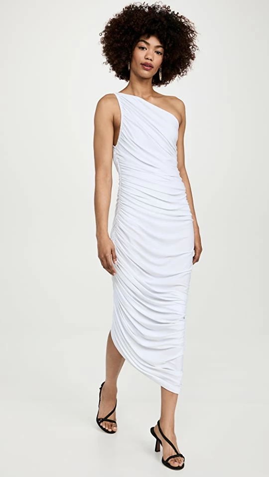 Sleek and slinky in a single-shoulder silhouette and soft jersey, this Norma Kamali dress is an of-the-moment midi that comes complete with a built-in bodysuit for added coverage.