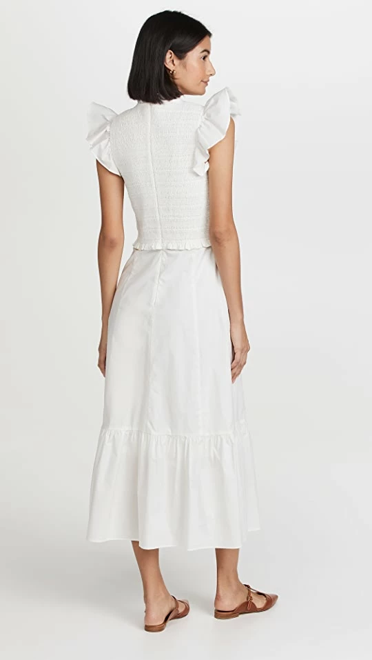 Cut from crisp cotton poplin and featuring flutter sleeves and a smocked bodice, this Sea dress adds a romantic element to your everyday ensembles. Pair it back to simple flats or sporty sneakers for an approachable daily look.