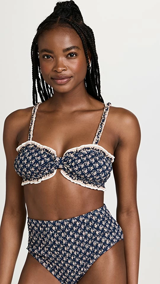 Best Sale βοΈ Sea Jasper Border Print Smocked π Bikini Top Marine π