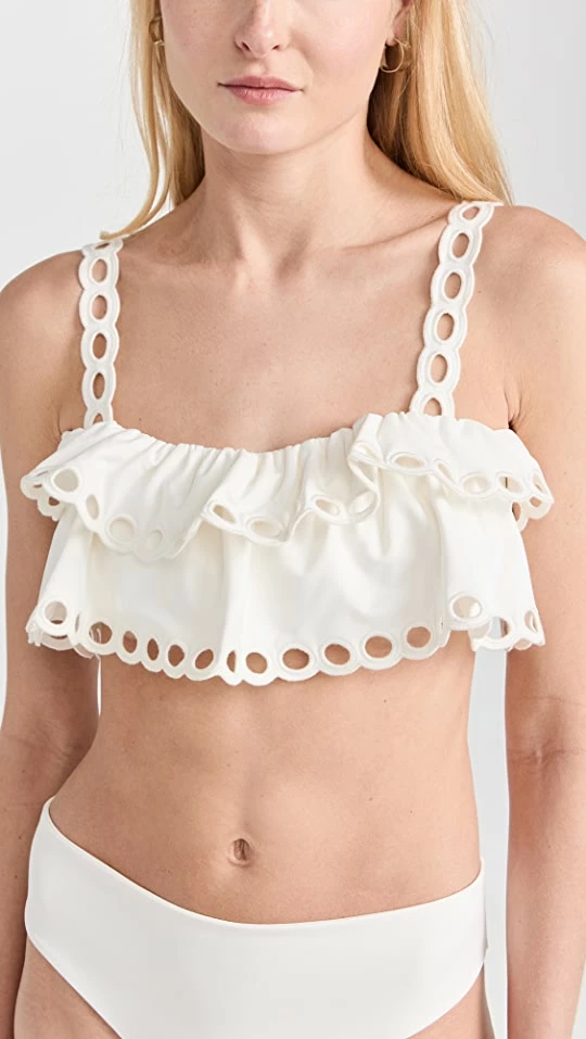Best Pirce π― Sea Solid Scallop Ruffle π Bikini Top White π
