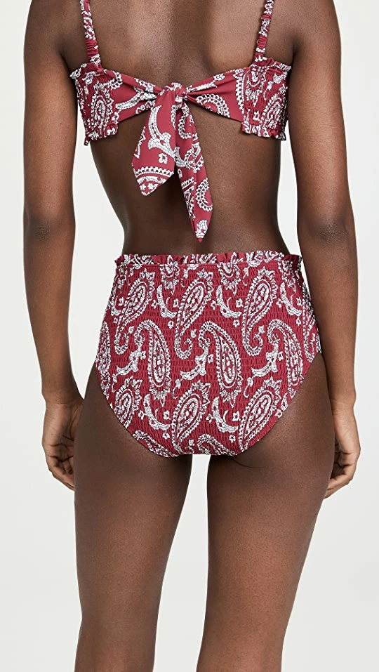A unique pair of high-rise Sea bikini bottoms, given extra texture with allover smocking and accented with a classic paisley pattern.