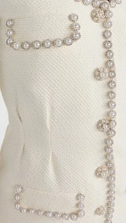 - Imitation pearl and ruffle trim