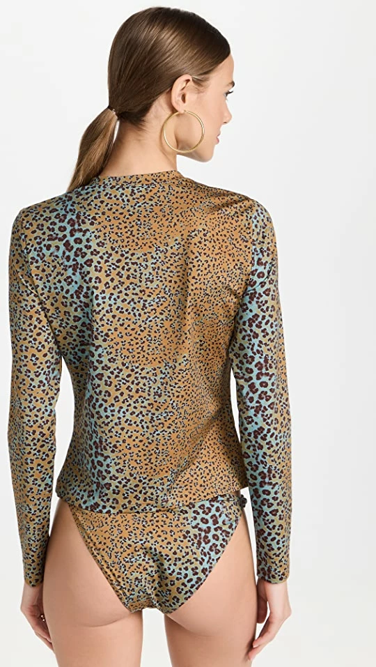 A blurred mix of lightly colored leopard patterns details this sleek Ulla Johnson rash guard.