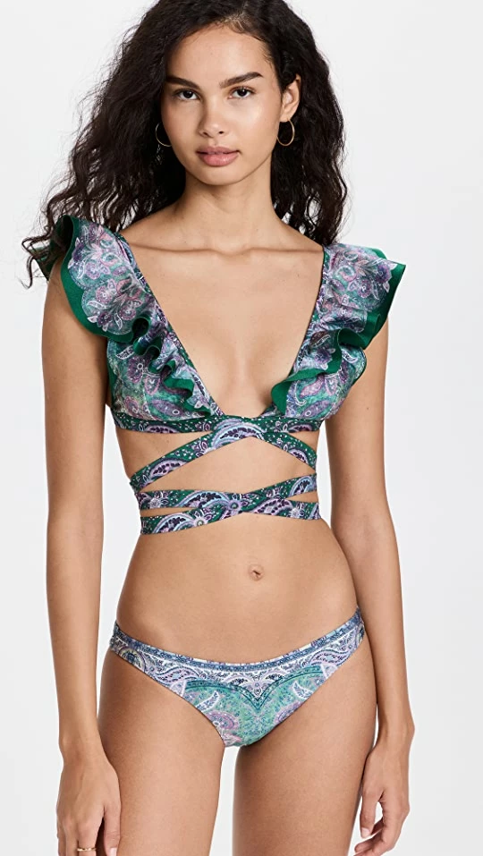 Wholesale π Zimmermann Anneke Wrap Ruffle π Bikini Set Teal Paisley π₯°